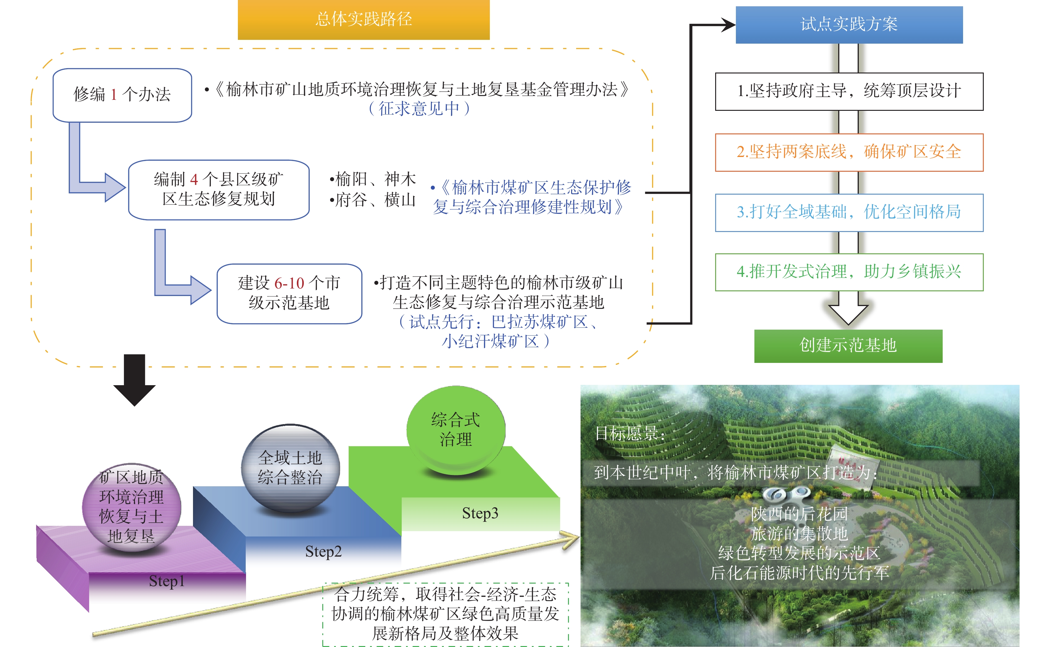 Yulin city, as an important part of the Northern Shaanxi National Energy and Chemical Industry Base, has made tremendous contributions to the economic and social development of China in the past thirty years. However, the exploitation of coal resources inevitably brought mined−out area collapse, land and water resources destruction, ecological degradation, and other problems to the local eco−environment. At present, the negative effects of coal scale development continue to aggravate the destruction of water and land resources in mining areas and the decline of ecosystem toughness, which has threatened the sustainable development of Yulin’s economy and society and the long−term security of national energy resources. Over the years, Yulin coal mine area has formed a number of replicable and popularizing experiences and patterns in geological environment governance, but it still presents "five problems" predicament, such as insignificant overall effect, low fund utilization rate, high implementation resistance, limited system design, lack of top−level planning, and the diversified governance modes and the corresponding policy mechanism have not yet formed a joint force. Following this case, combining the current governance situation of coal mining area and the needs of high−quality development in rural areas, this study innovatively formed a systematic solution strategy for comprehensive treatment of Yulin coal mining area, which includes "one goal, two lines, three spaces, four patterns", considering of analyzing the current situation of ecological problems in Yulin coal mining area and the predicament and reason of ecological restoration work. Then three innovation regulations and the concrete practice path of "three−step strategy" were proposed, and a list of comprehensive treatment modes (i.e., ecological restoration +N) applicable to Yulin coal mine area was summarized. Finally, countermeasures and suggestions were put forward from the aspects of policy, technology, and management. The outcome can provide reference for the next step of systematic and overall guidance for coal mining enterprises in Yulin to carry out mine ecological protection and restoration work, and effectively promote the ecological restoration of coal mining areas to a diversified comprehensive governance direction and to a new green development pattern of social, economic, and ecological coordination.